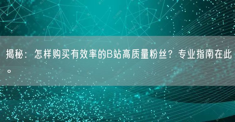 在B站这个充满活力的平台上,拥有大量高质量粉丝对于个人或品牌的发展至关重要。然而,如何购买有效率的B站高质量粉丝,却是许多用户关注的焦点。本文将为你提供一份专业指南,助你精准获取活跃真实的粉丝,提升影响力。