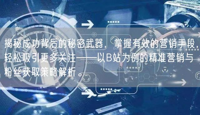 成功背后的秘密武器是精准营销与粉丝获取策略。通过掌握有效的营销手段,我们可以轻松吸引更多关注。以B站为例,我们不仅可以了解精准营销的重要性,还可以学习到具体的粉丝获取策略。让我们在数字化时代,用精准营销助力成功!