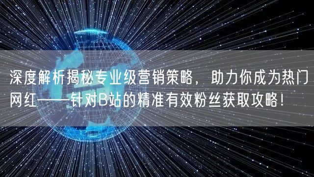 随着互联网的普及和社交媒体的发展,越来越多的人希望通过社交媒体平台成为网红。而在众多社交媒体平台中,B站以其独特的用户群体和内容形式成为了众多年轻人的首选。本文将深度解析揭秘专业级营销策略,助力您在B站精准获取粉丝,成为热门网红。