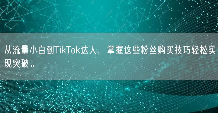 在TikTok平台上,从流量小白到成为受人瞩目的达人并非易事。但是,掌握一定的粉丝购买技巧,以及精准定位目标受众和优化内容创作,是达成这一目标的关键。本文将为你揭示这一过程,助你轻松实现个人突破。