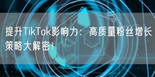 随着TikTok的日益普及,越来越多的用户开始关注如何提升自己的影响力并获取更多粉丝。本文将为你揭示高质量粉丝增长的核心策略,助你成为TikTok的佼佼者!