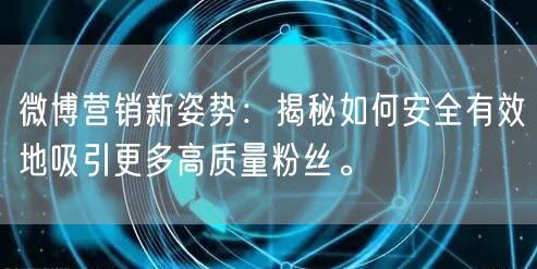 通过以上方法的有效实施,可以安全有效地吸引更多高质量粉丝关注你的微博账号。未来随着社交媒体的不断发展和变化我们还需要不断探索新的营销方法和策略以适应时代的发展和用户需求的变化从而更好地推广品牌和吸引潜在客户实现营销目标。因此我们将继续关注微博营销的新动态和新趋势探索更有效的营销方法和策略为企业创造更大的价值。