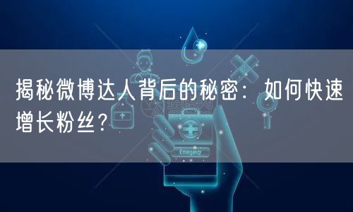 随着互联网的发展,社交媒体已成为人们生活中必不可少的一部分。而微博作为其中的佼佼者,吸引了众多用户的关注。在这样的背景下,成为微博达人,拥有众多粉丝,成为了许多人的梦想。那么,如何快速增长粉丝,成为微博达人呢?本文将为你揭秘微博达人背后的秘密。